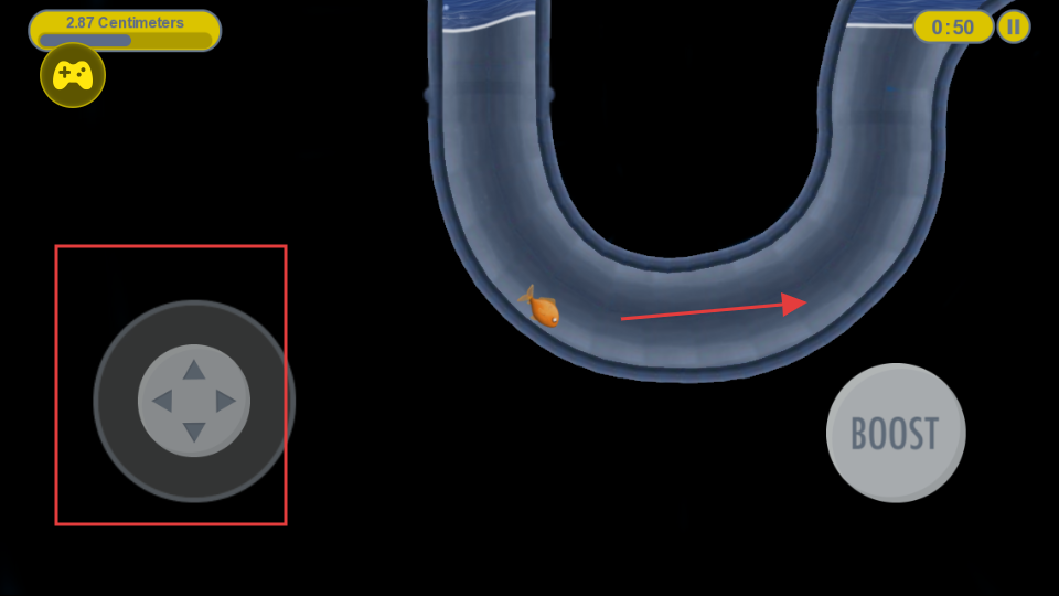 2、通过左侧虚拟摇杆控制生物移动方向,在管道、水域等场景中灵活穿梭,躲避障碍,寻找可吞噬的目标。