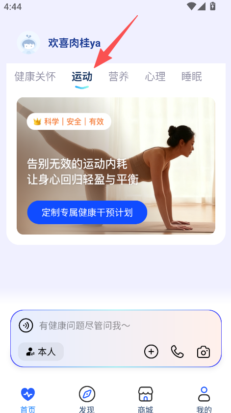 1、打开软件,点击运动板块,查看定制专属健康干预计划入口。