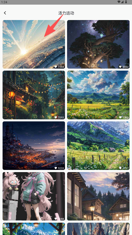 1、在“活力运动”主题页面浏览,选择目标主题插画进入。