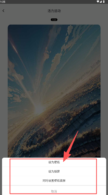 3、在弹出的操作菜单中选择“设为壁纸”即可将该图片设置为手机壁纸。