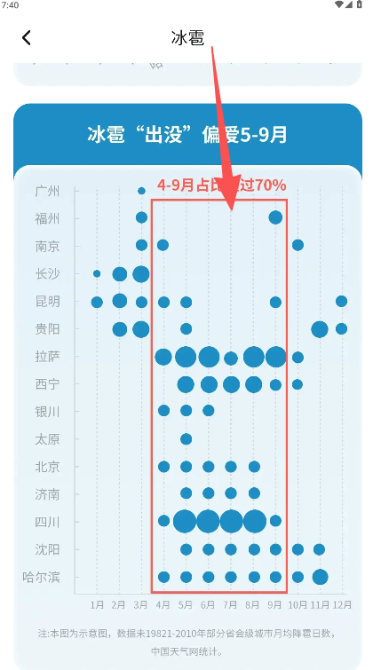 3、上下滑动查看该现象的详细图解与数据统计,如高发月份分布。