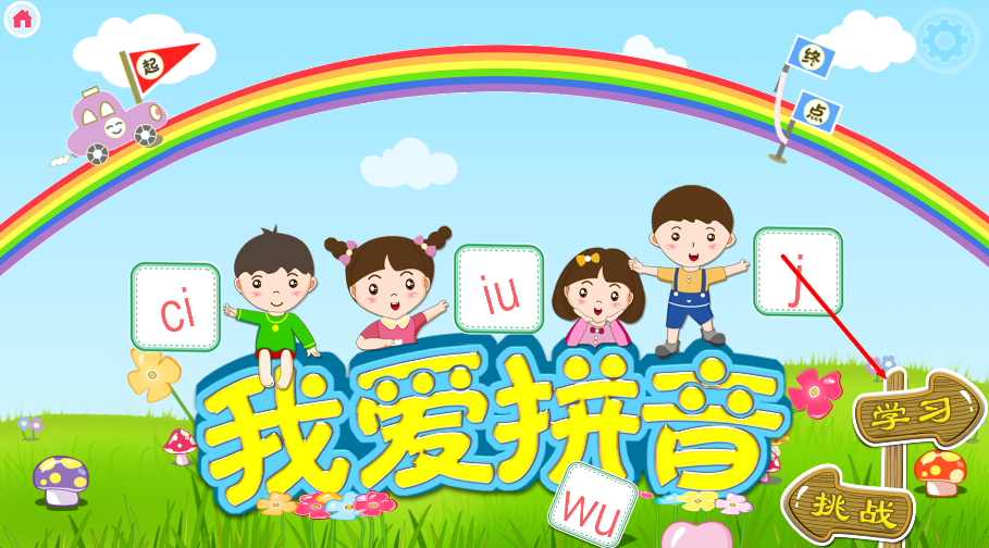 1、打开安装好的《我爱拼音》应用后,点击首页的“学习”按钮进入学习界面。
