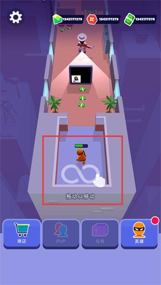 1、根据提示【拖动以移动】,拖动下方操作区域控制角色移动,向目标敌人与道具区域靠近。