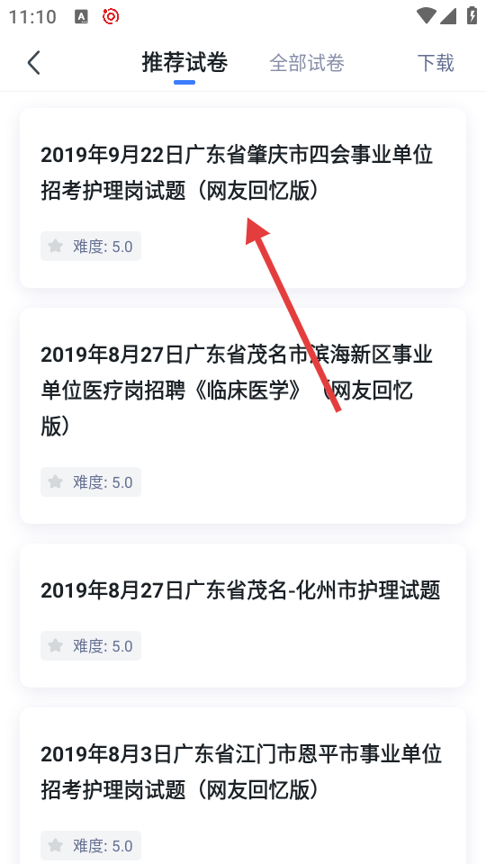 2、在推荐试卷列表中,选择目标试卷进入答题。