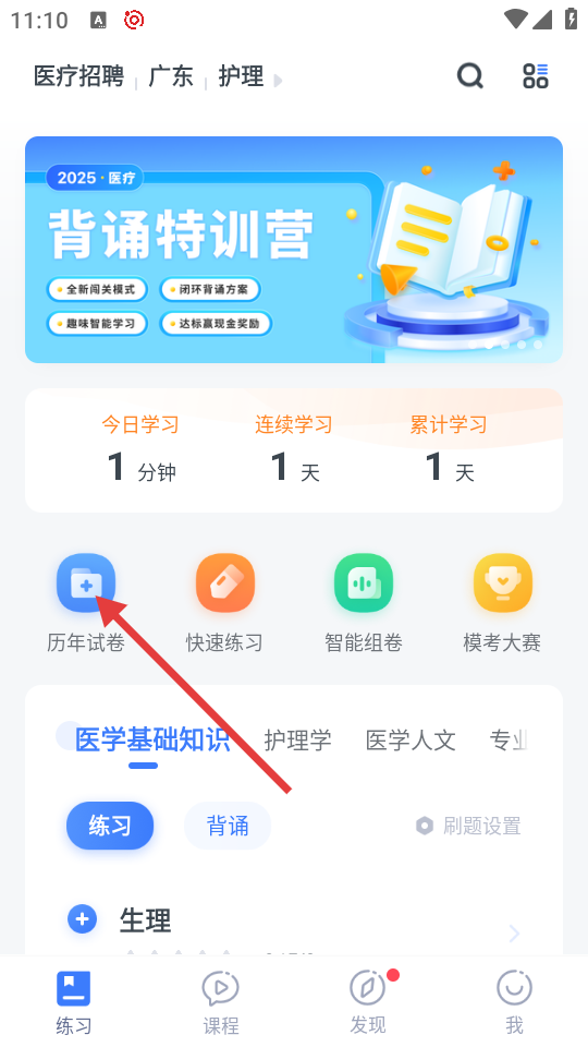 1、点击【历年试卷】图标,进入试卷选择界面。