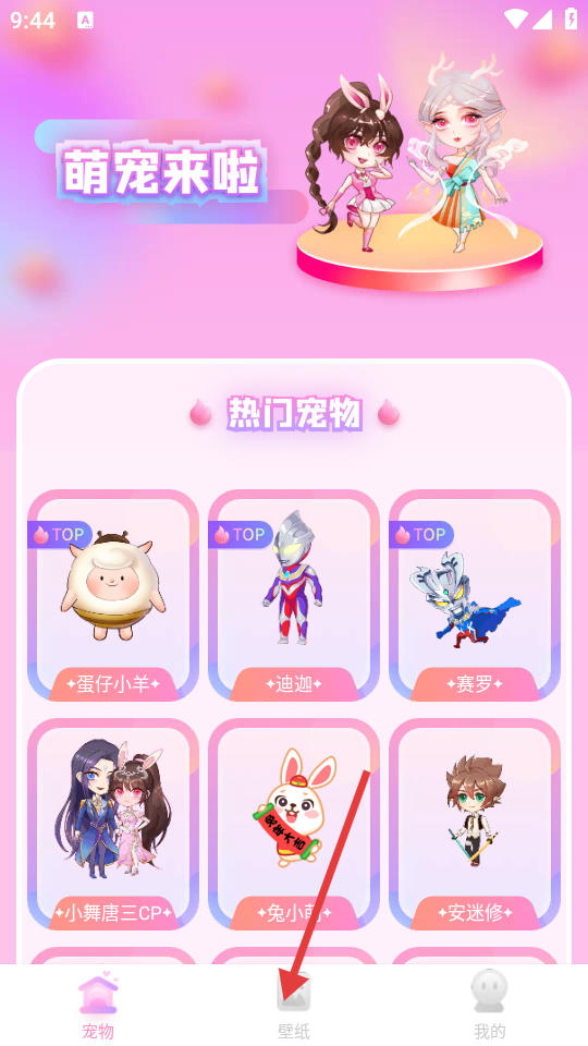 1、点击底部【壁纸】选项,进入壁纸页面。