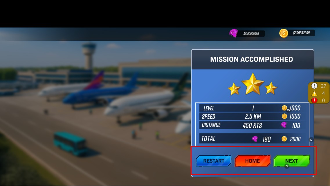 3、任务完成后,可点击【RESTART】重挑战、【HOME】回主界或【NEXT】进下一关,获取奖励提升航天能力。