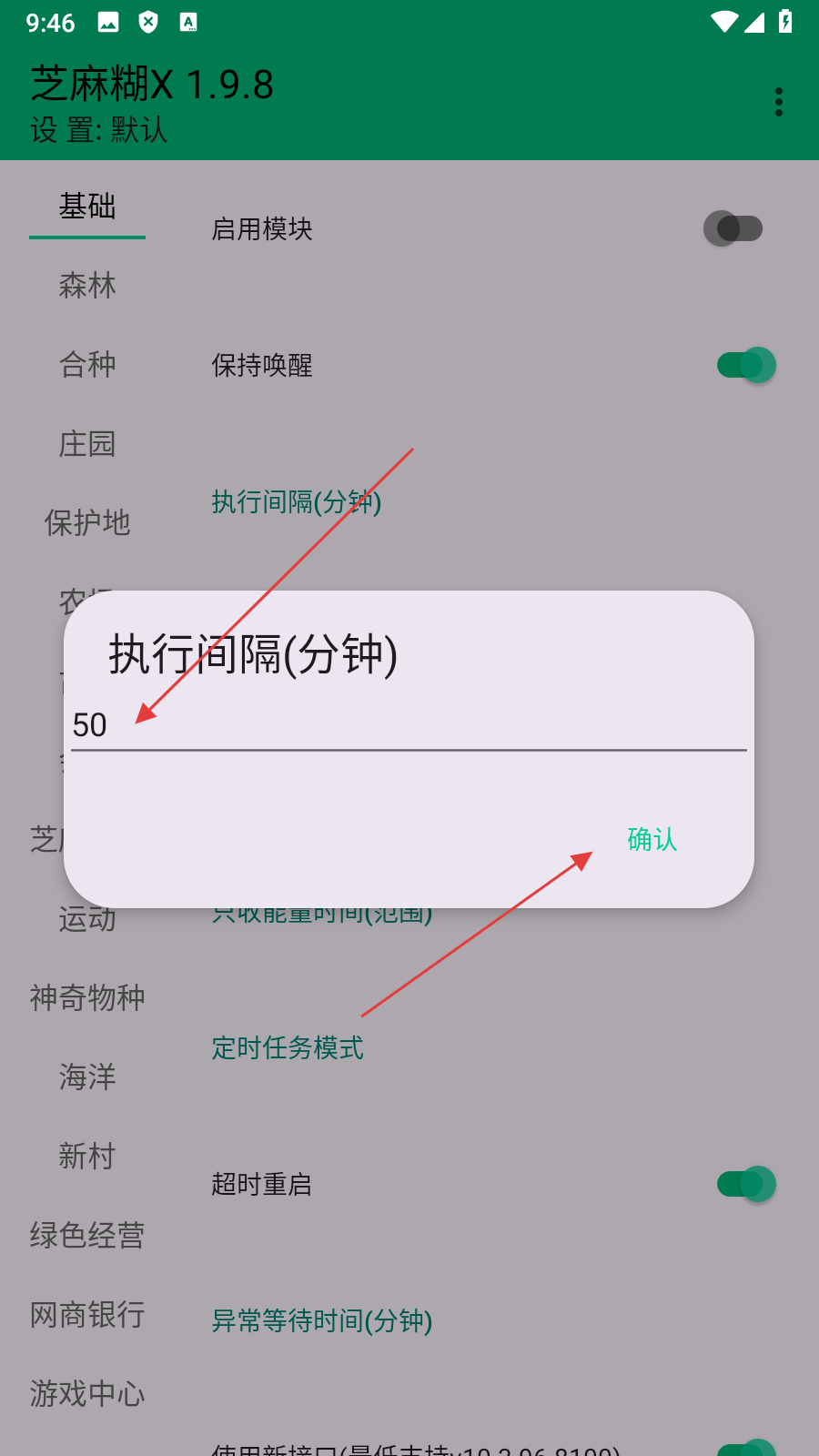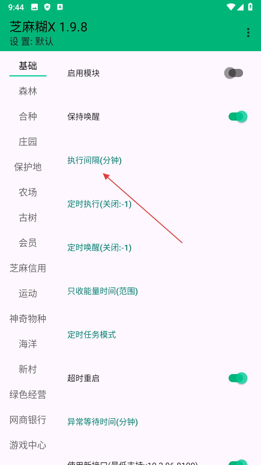 3、在设置页面,点击【执行间隔(分钟)】,弹出间隔设置弹窗。