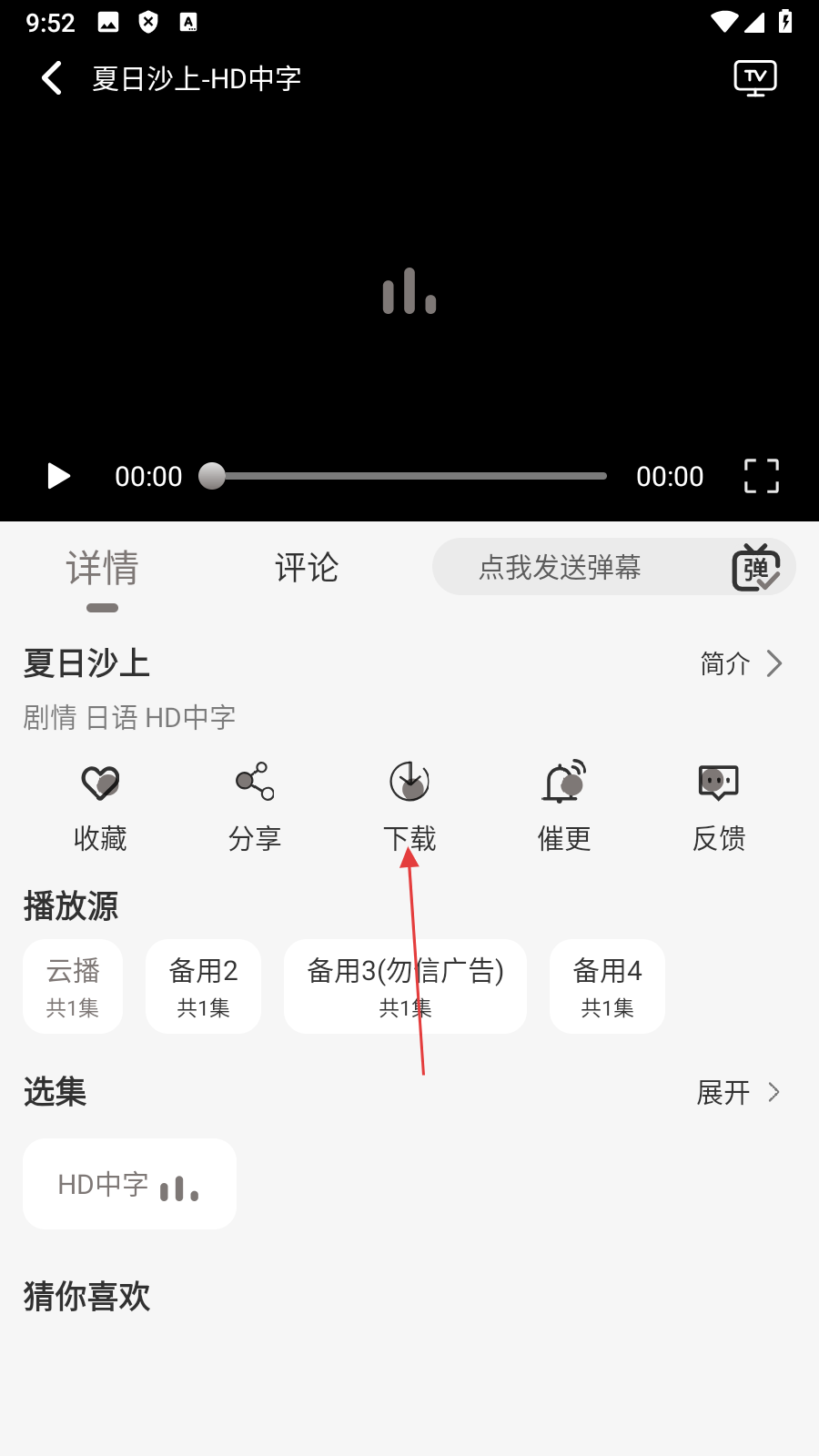 3、在电影播放页面,点击【下载】,弹出下载选项弹窗。