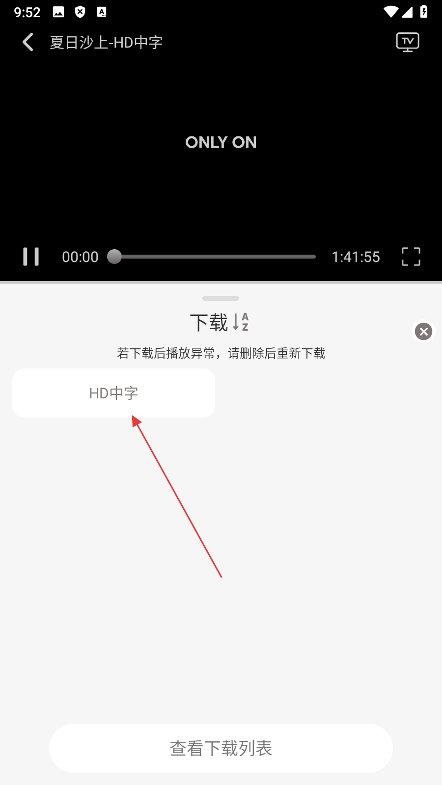 4、在下载选项弹窗,点击【HD中字】,即可开始下载电影内容。