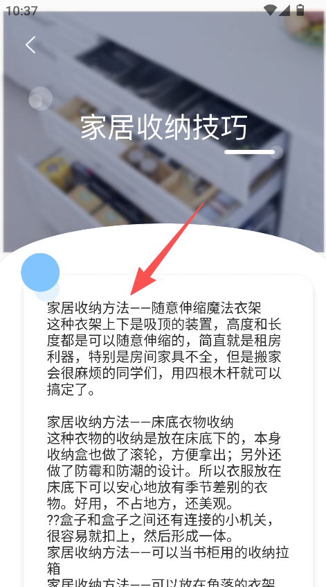 2、查看家居收纳技巧等内容,学习实用生活知识。