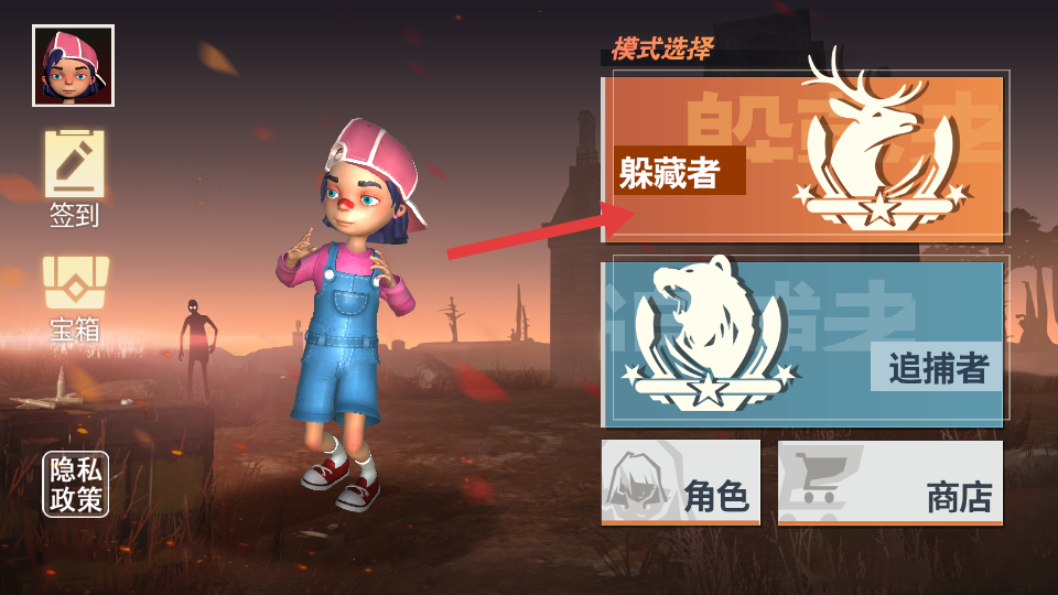 1、选择【躲藏者】模式,进入游戏,开启躲藏与破译的冒险。