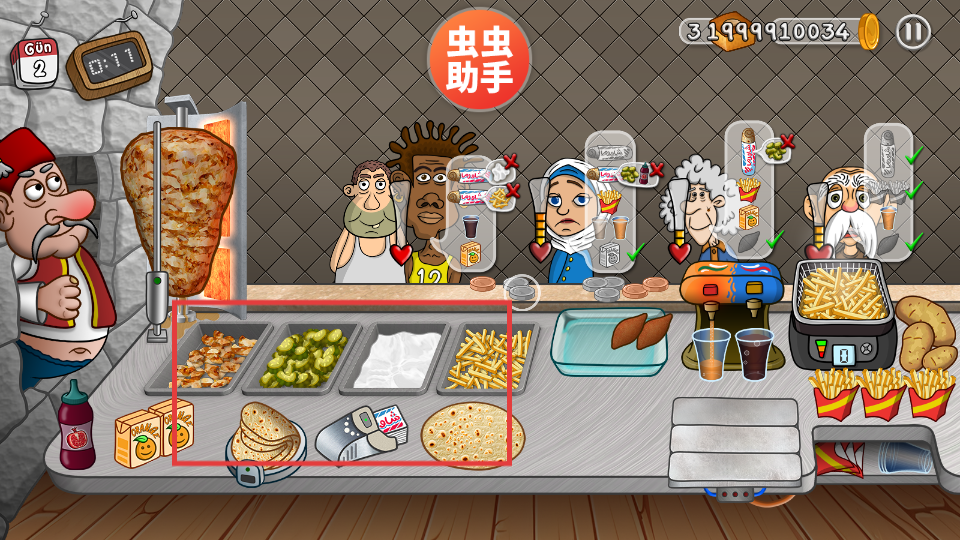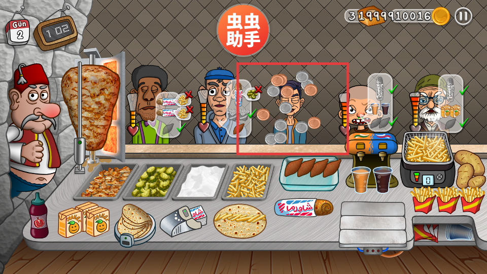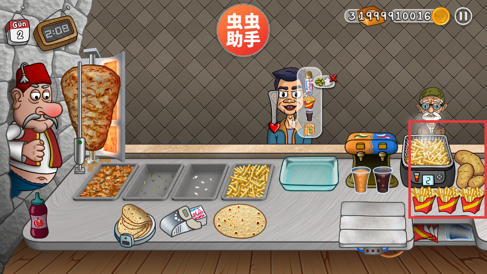 2、制作薯条等食物,满足顾客需求,获取金币,提升餐厅收益。