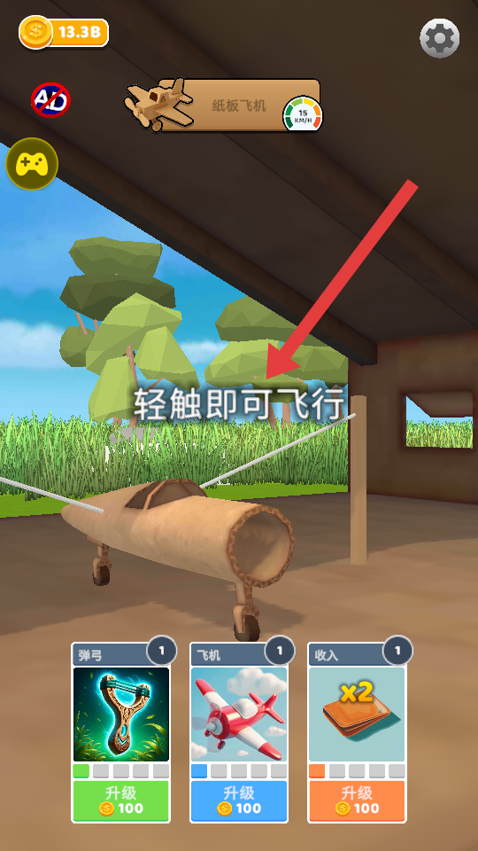 1、根据“轻触即可飞行”提示,轻触屏幕让纸板飞机起飞,开始飞行挑战。