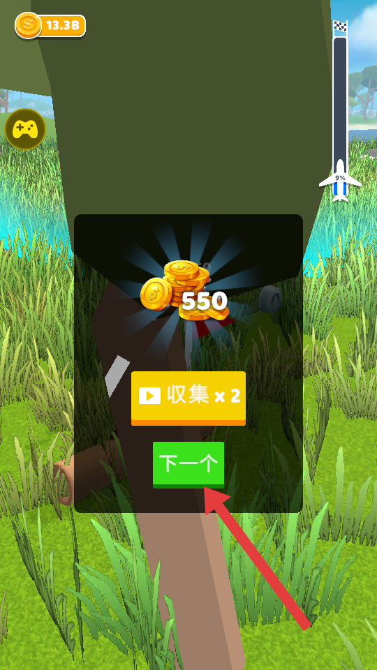 4、飞行结束后,点击【下一个】按钮,领取金币奖励并进入下一次飞行挑战。