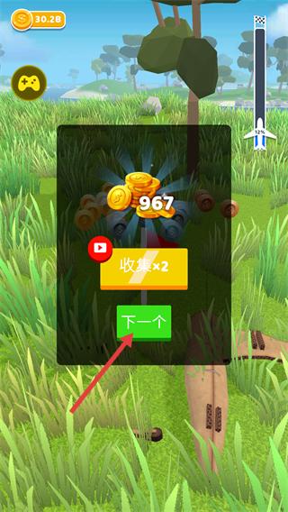4、飞行结束后,可点击【收集×2】按钮观看广告翻倍获取金币,或点击【下一个】进入下一次飞行。