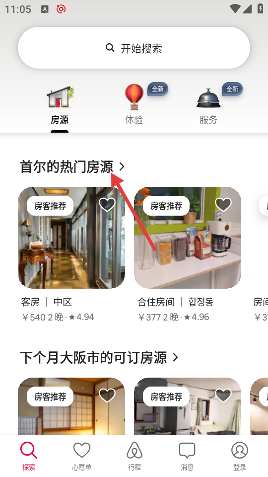1、点击【首尔的热门房源】,进入首尔房源列表页面,可查看各类房源信息。