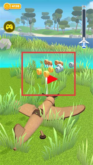 4、飞行至红旗区域收集【768金币】等资源,完成本次飞行后积累奖励用于后续升级。
