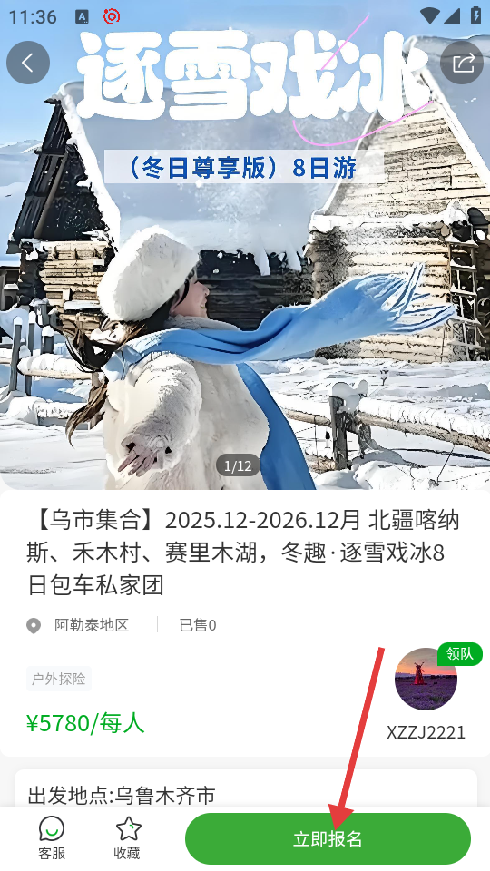 3、在路线详情页,点击【立即报名】按钮,进入提交订单页面。