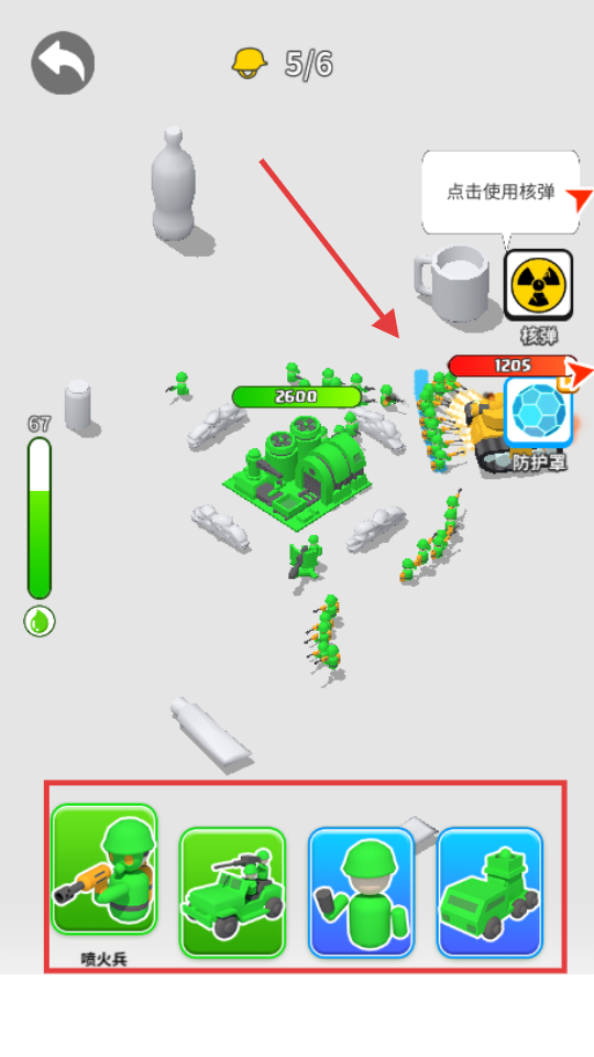 3、在战斗中可选择兵种和使用道具,指挥部队进攻敌方目标。