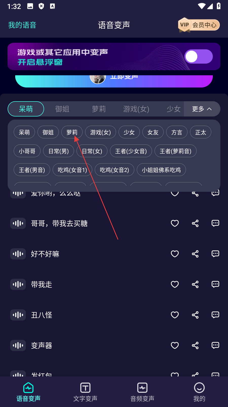 2、在展开的选项中,点击【萝莉】,切换到萝莉语音类型页面。