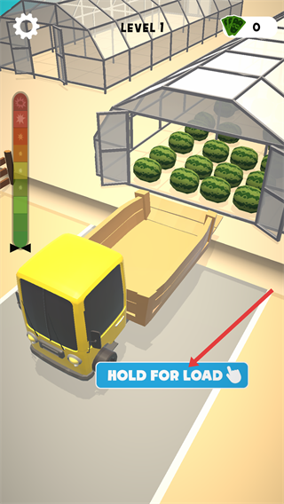 2、在西瓜大棚前,按住【HOLD-FOR-LOAD】按钮,将西瓜装载到货车上。