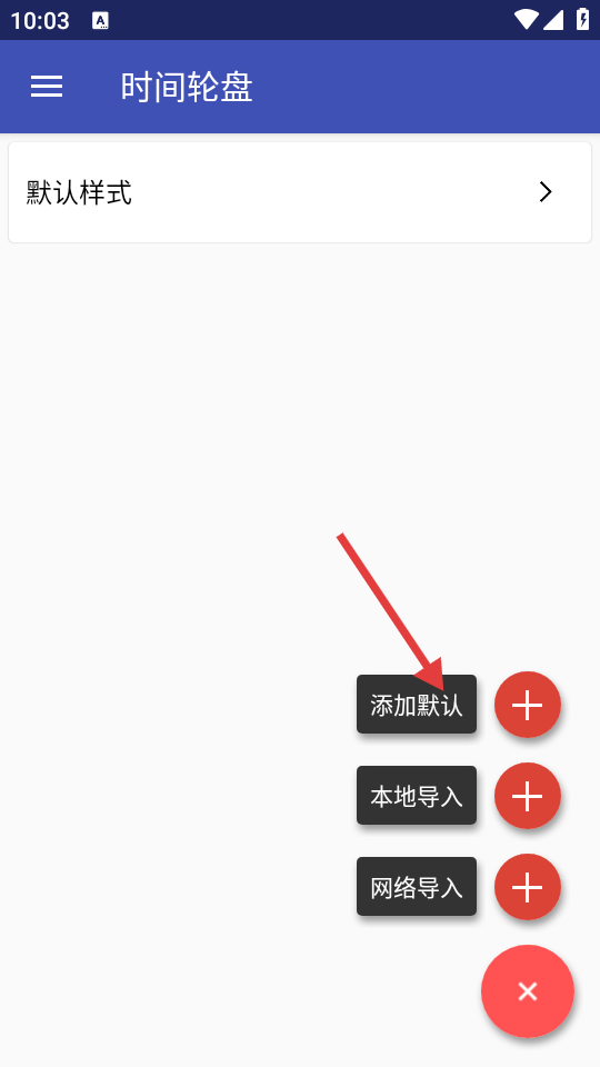 2、在展开的选项中,点击【添加默认】按钮,可添加默认样式的时间轮盘。