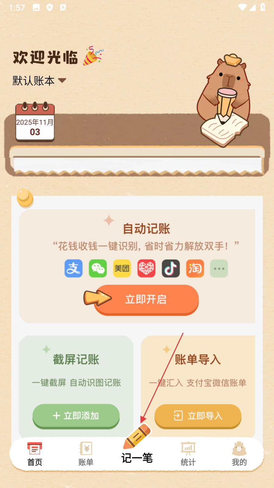2、搭配可爱的卡皮巴拉形象辅助操作,在记账过程中增添趣味性,打破传统记账工具的枯燥感,提升用户使用兴趣。
