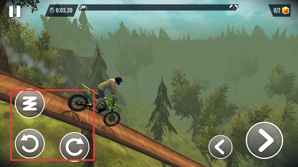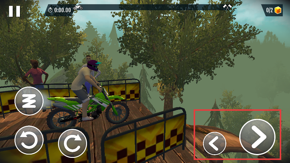 4、使用右侧方向按钮操控摩托车行驶方向,在森林赛道中平稳前进,完成关卡。