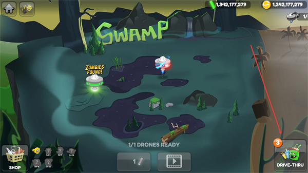 3、进入游戏后,遇到僵尸图标时点击【大脑】,将大脑扔出吸引僵尸。