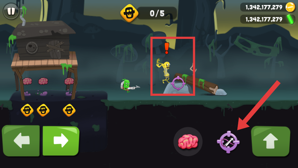 3、点击右侧攻击图标,使用武器瞄准并攻击僵尸,将其捕获。