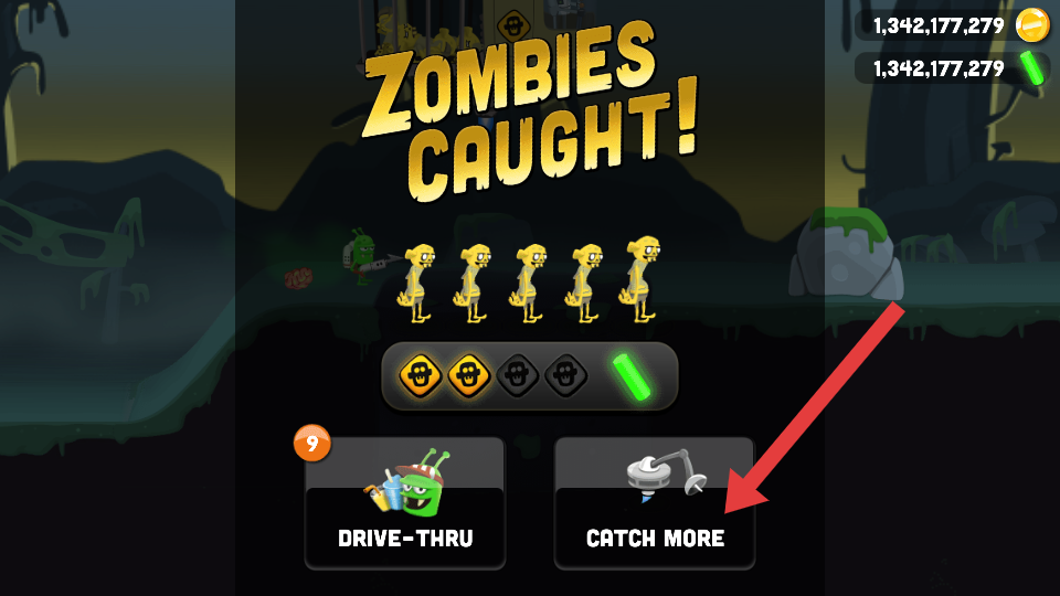 4、捕获僵尸后,点击【CATCH-MORE】按钮,完成关卡目标。