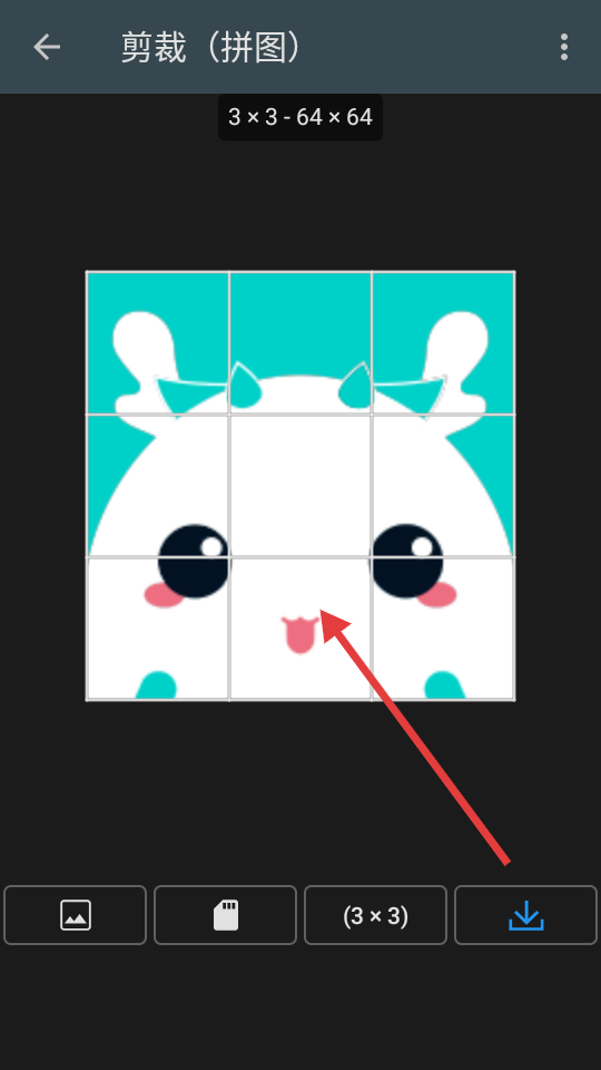 4、在【剪裁(拼图)】界面,可将图片按【3×3】等格式进行剪裁拼图,完成后可进行保存等操作。
