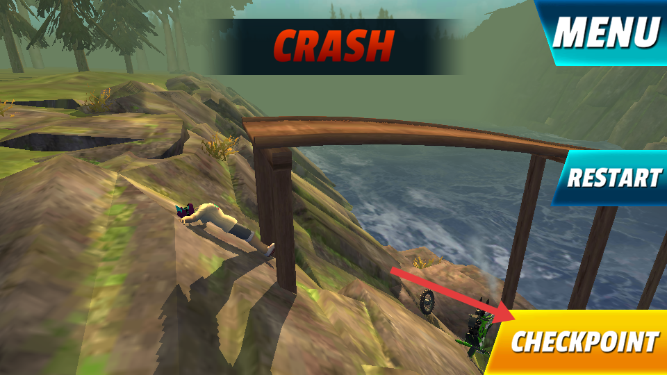 4、碰撞后点击【CHECKPOINT】,从检查点重新开始,减少重复挑战的时间,顺利通关。