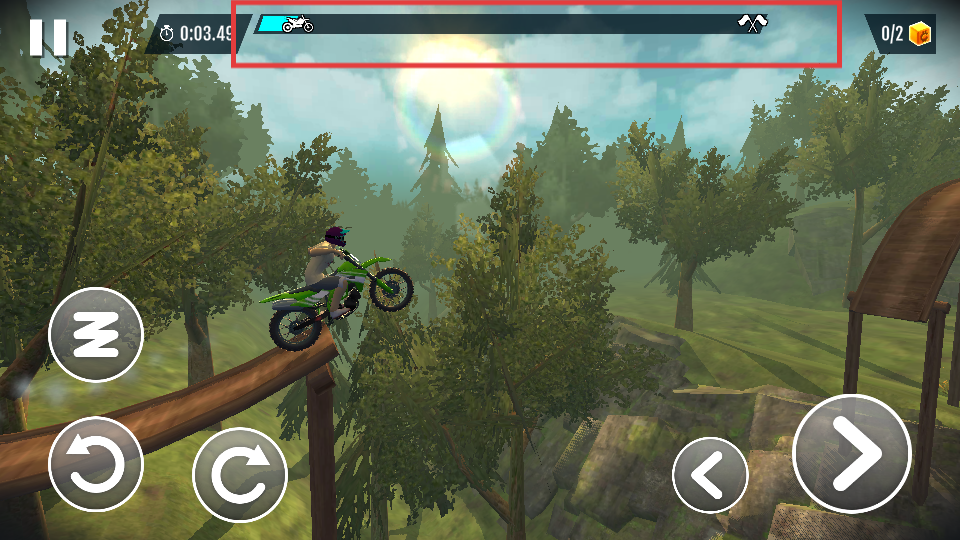 2、关注赛道进度和时间,合理操控摩托车,在规定时间内完成赛道任务。
