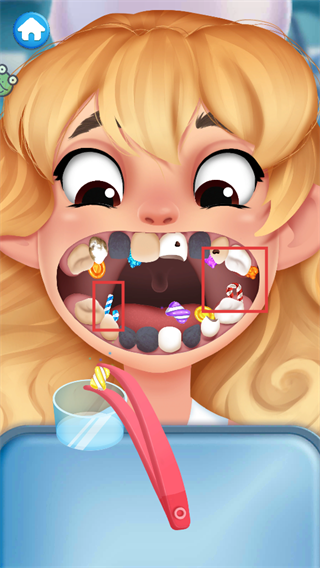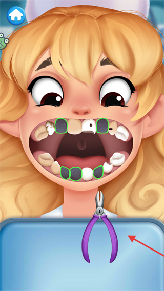 3、使用【钳子】处理绿色框的【黑色牙齿】,按序修复或拔除,恢复牙齿健康。
