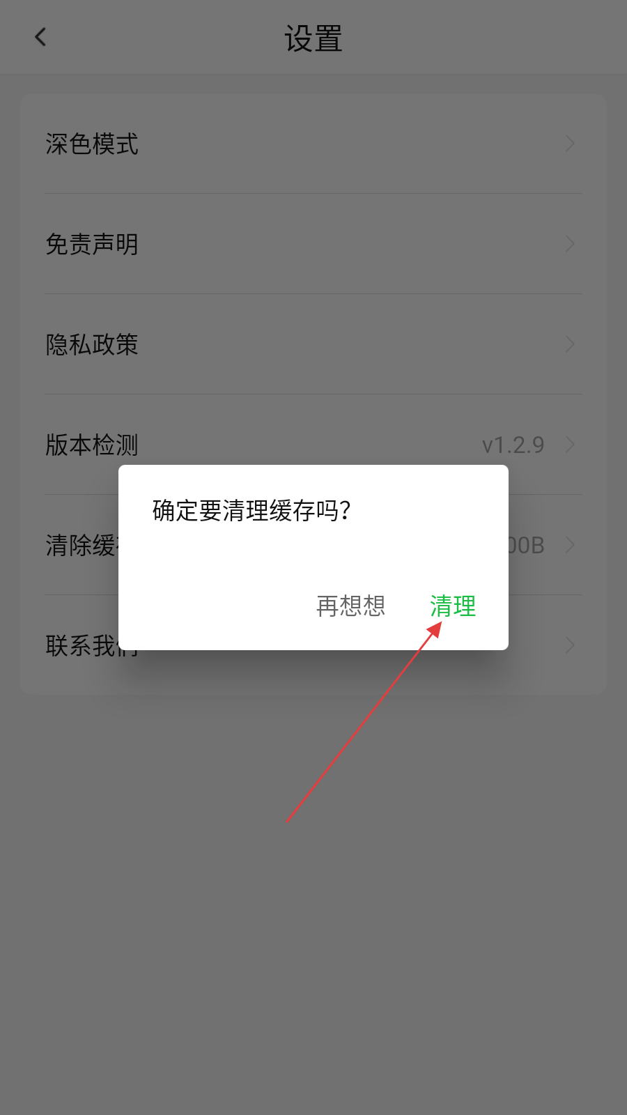 3、在设置页面,点击【清除缓存】,弹出清理缓存确认弹窗。