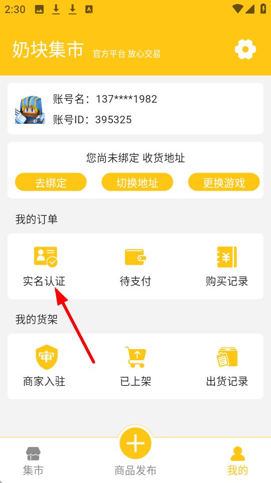 3、在“我的”页面点击【实名认证】,进入实名认证流程。
