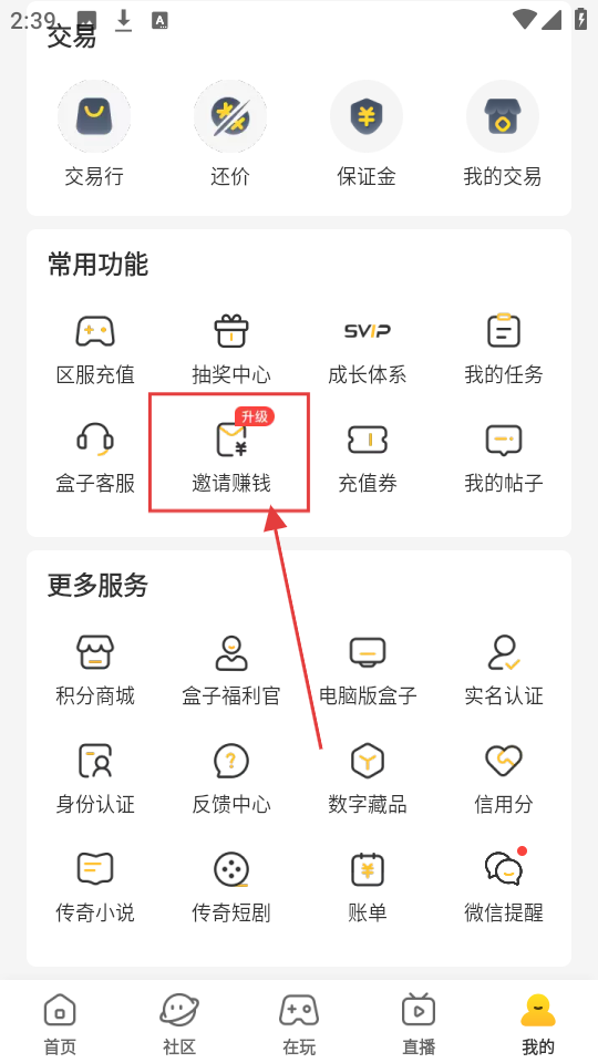 2、进入个人页面后,点击【邀请赚钱】,可进入邀请好友赚奖励页面哦。
