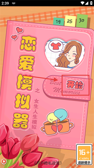 1、点击【开始】按钮进入游戏,化身女主开启与美男子邂逅的恋爱模拟人生。