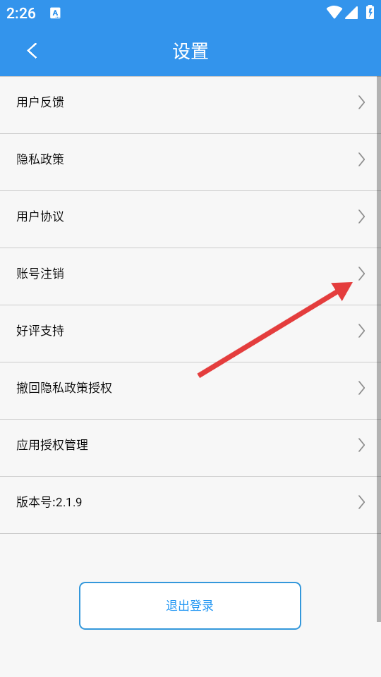 3、在【设置】界面,点击【账号注销】选项,可进入账号注销确认页。