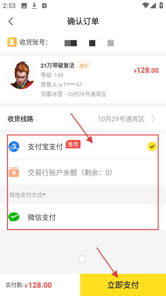 4、在确认订单页面,选择支付方式,点击【立即支付】,即可完成交易支付哦。