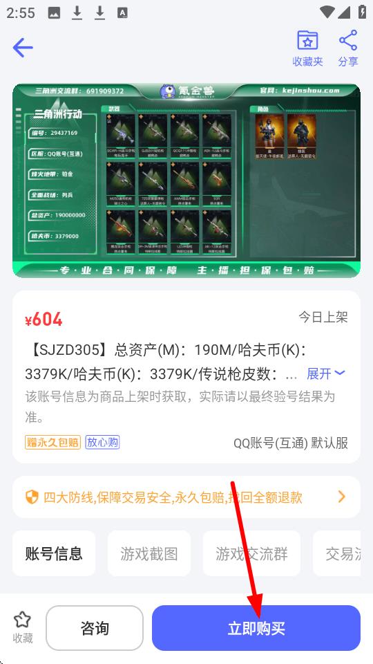 3、在找到心仪的游戏账号后,可点击【立即购买】按钮进行账号购买操作。