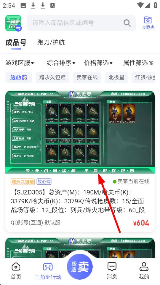 2、在【三角洲行动】板块中,可浏览游戏账号商品信息,根据自身需求选择合适的账号。