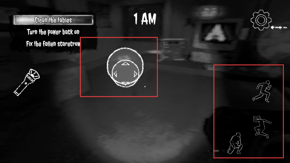 2、在夜间场景中,需完成清洁桌子、恢复电力、修复稻草人等任务,利用手电筒照明,观察环境,避免被恐龙袭击。