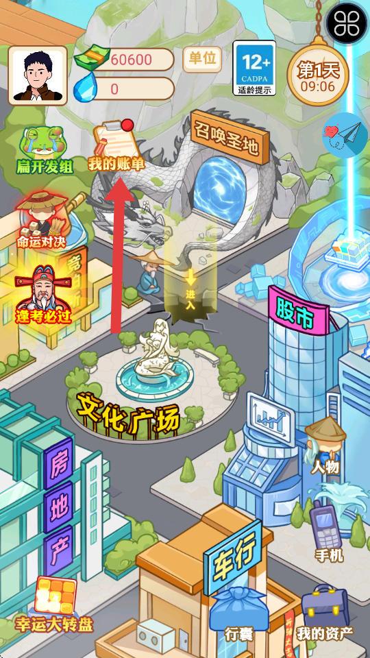 1、在游戏主界面里,点击【我的账单】进入账单界面。