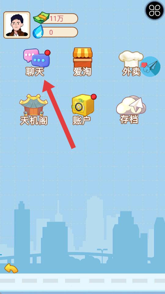 3、还完债务后打开手机,点击【聊天】图标,进入聊天界面。