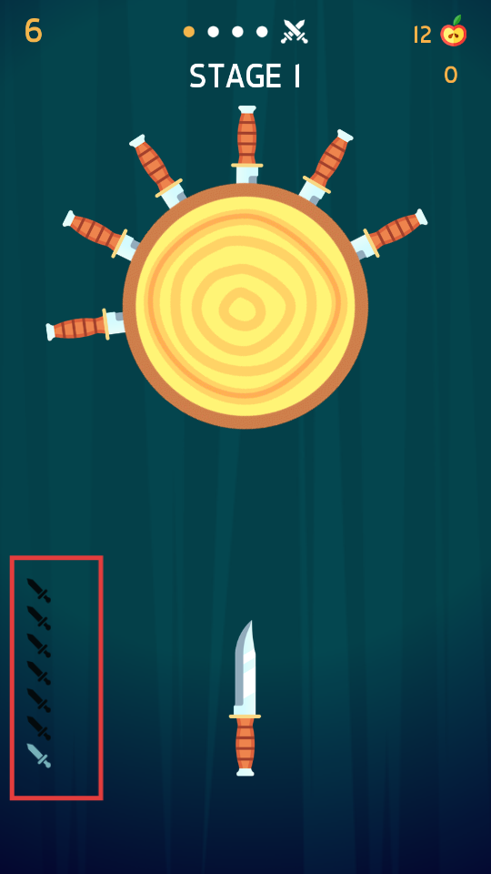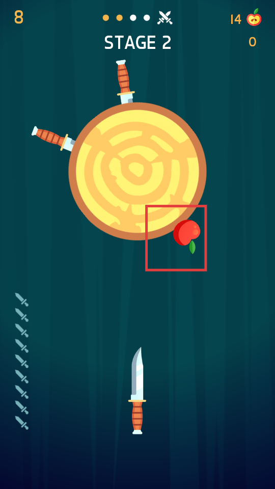 2、观察刀具数量和旋转圆盘,找准时机发射刀具,避免碰撞,顺利通过关卡。