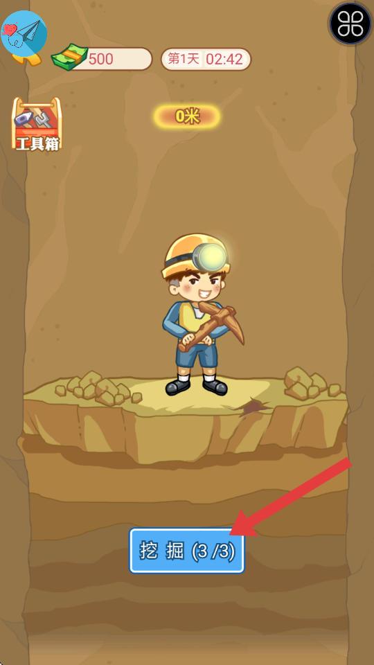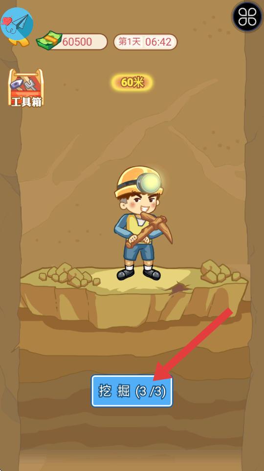 2、在挖矿场景中,点击【挖掘】按钮,进行挖矿操作,获取金币资源。