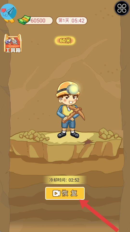 3、若挖掘次数耗尽,可点击【恢复】按钮恢复挖掘次数,继续挖矿。